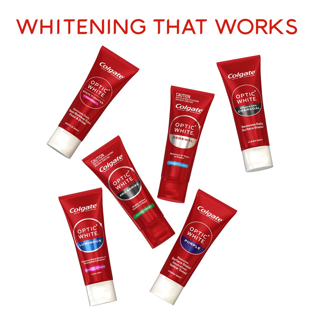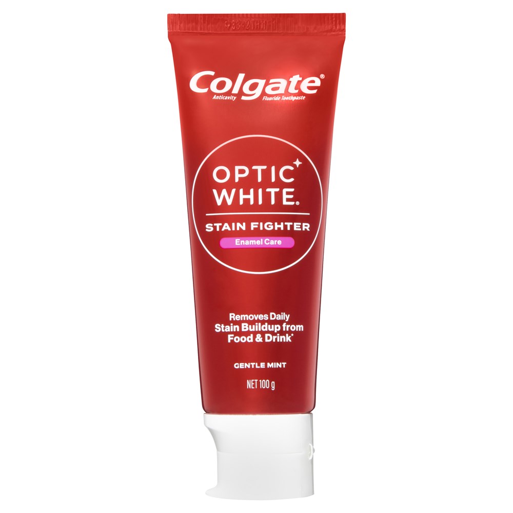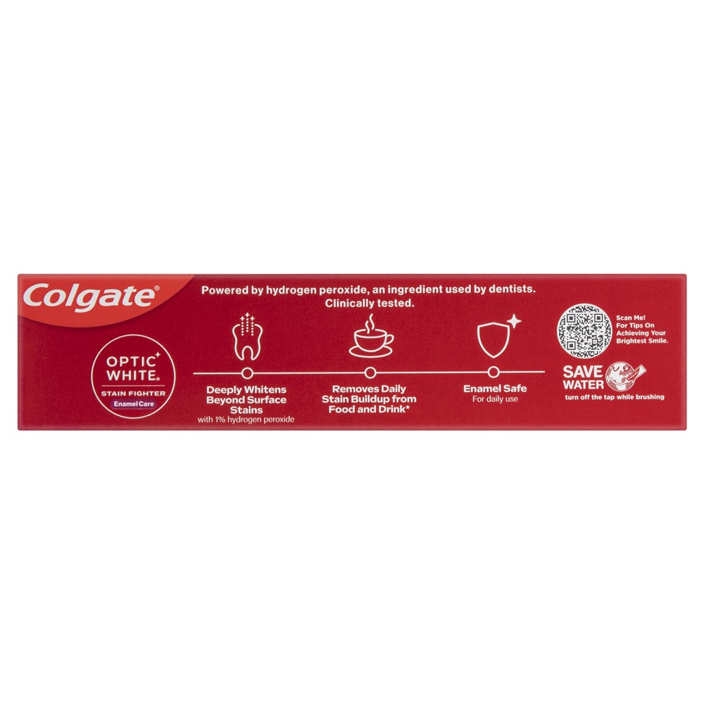 Colgate Optic White Stain Fighter Enamel Care Teeth Whitening Toothpaste is powered by hydrogen peroxide, the same teeth whitening ingredient used by dentists.