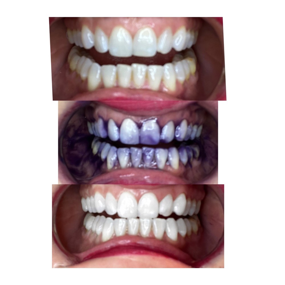 This violet coloured, berry flavoured toner significantly reduces any yellowness on the teeth and slightly darkens the gums, making the teeth appear whiter due to increased contrast.