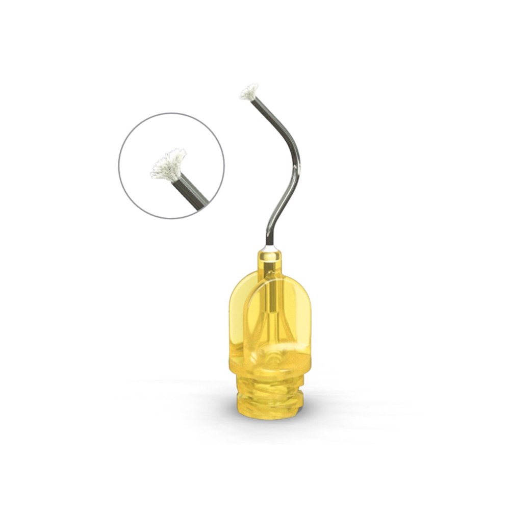 The Metal Dento-Infusor tip with Comfort Hub is an essential component of Ultradent’s tissue management system, used for delivering hemostatic agents to the sulcus. Its padded brush end is used to scrub and rub the hemostatic into the cut capillaries, providing profound hemostasis.